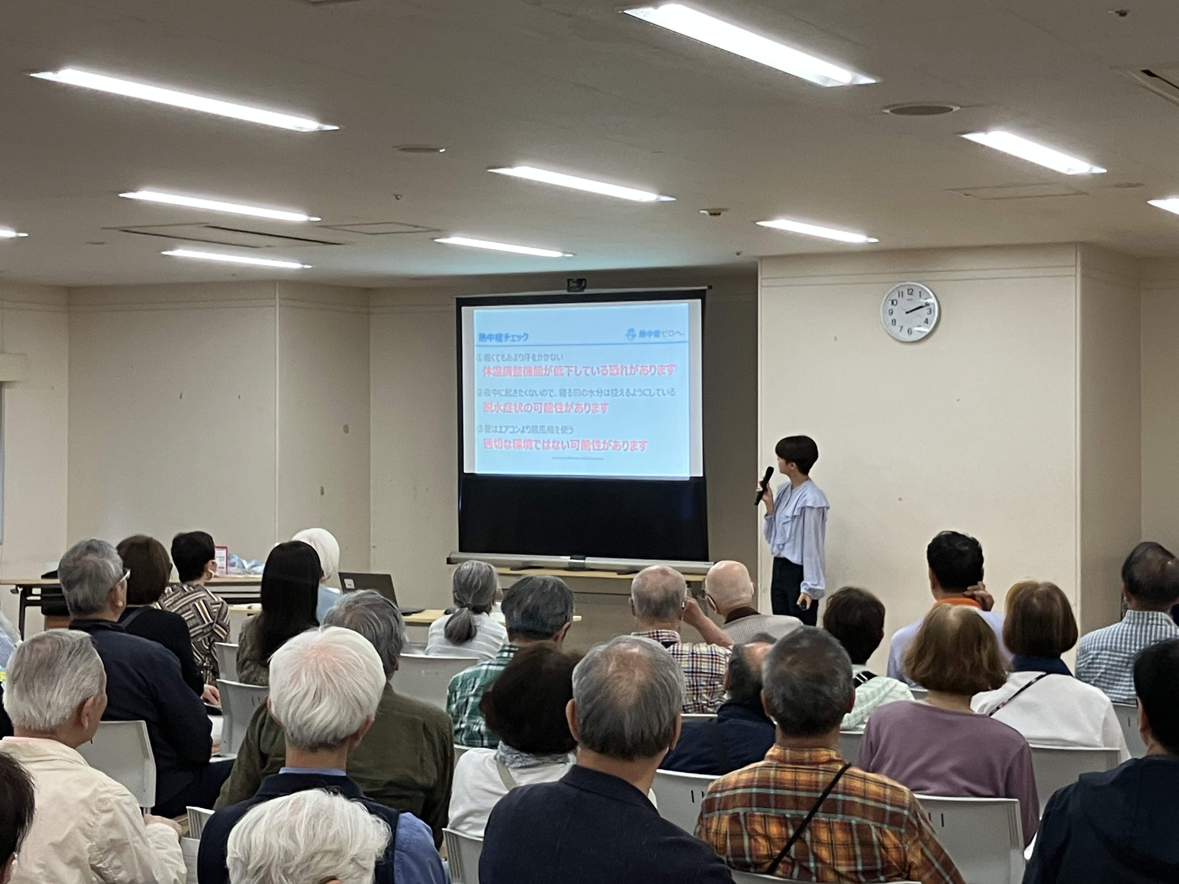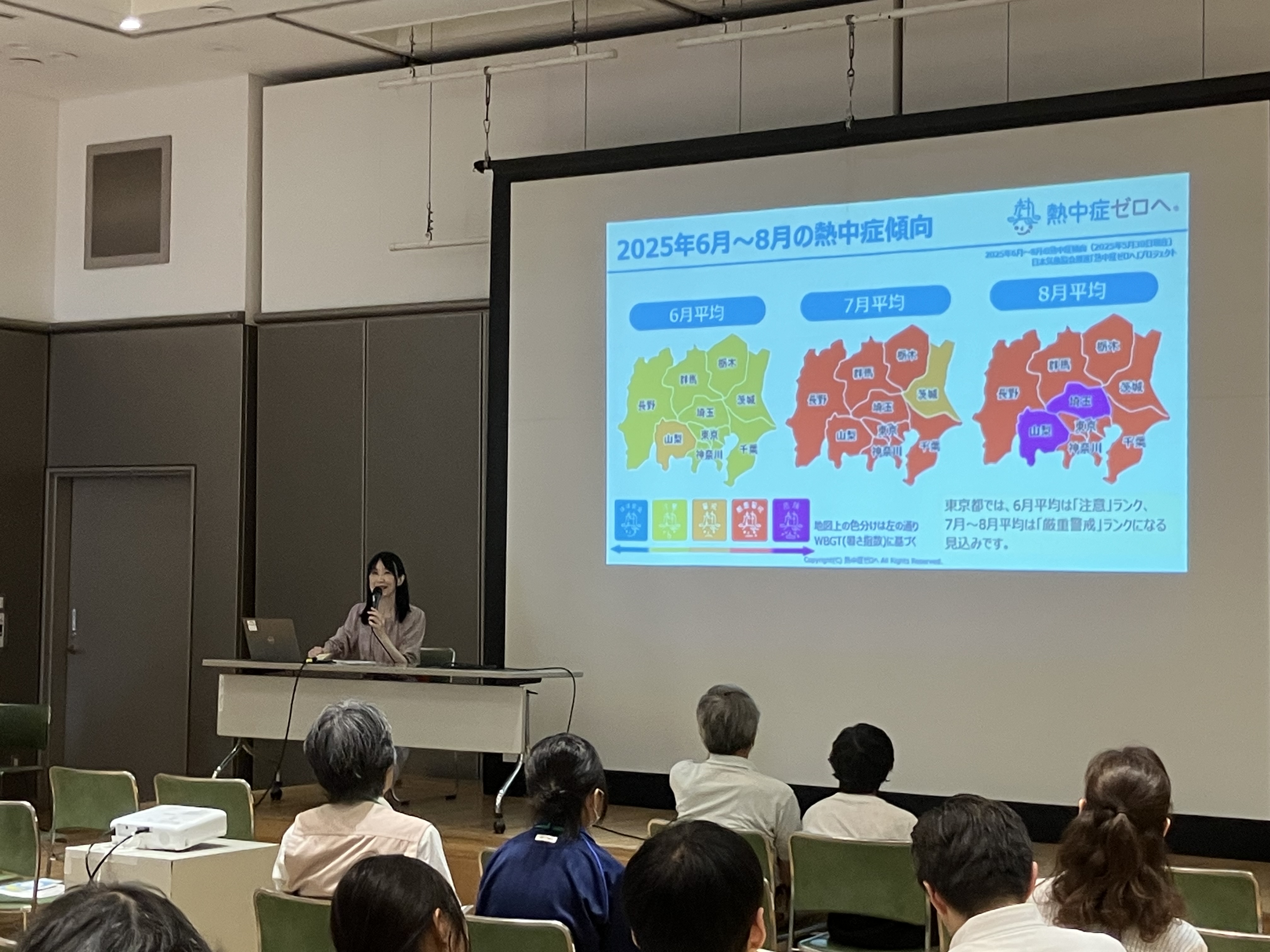 今年は2025年5月〜8月初旬に計23回実施し、特に地域包括支援センターを中心に、高齢者を対象としたセミナーが多く開催されました。地域住民の皆さまと交流を図りながら、熱中症リスクの高い高齢者や、また地域を支える自治体、団体職員の方々などへの意識向上に繋げることができました。